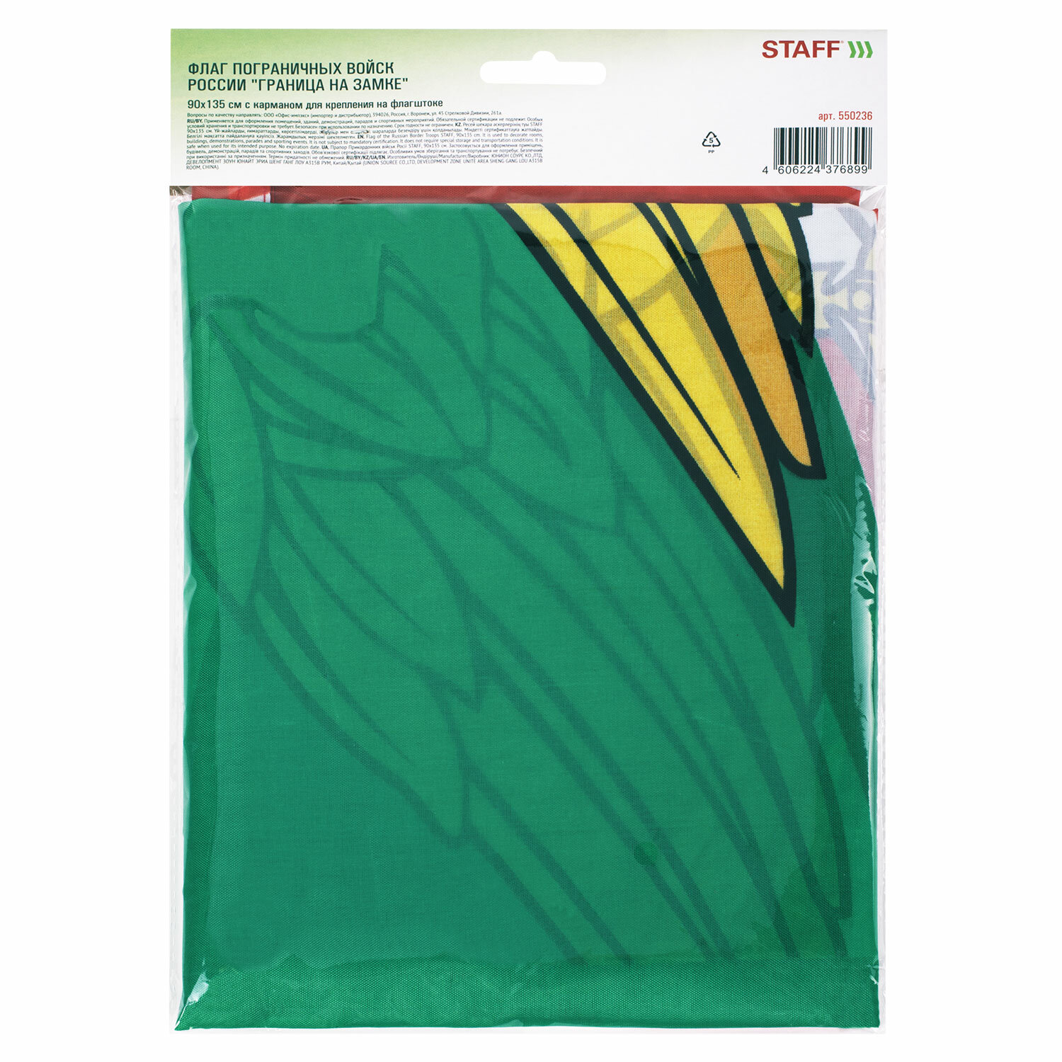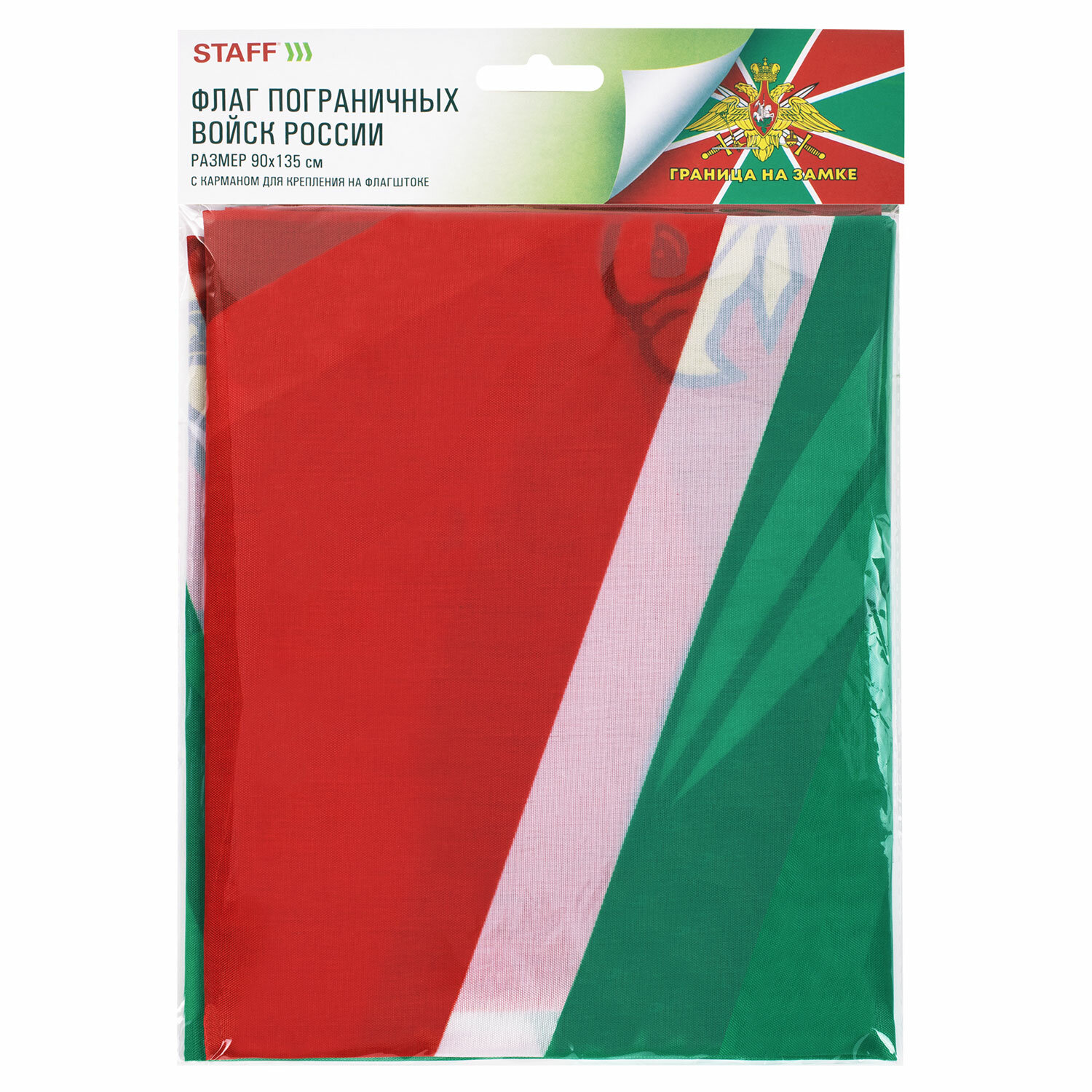 Флаг Пограничных войск России "ГРАНИЦА НА ЗАМКЕ" 90х135 см, полиэстер, STAFF, 550236