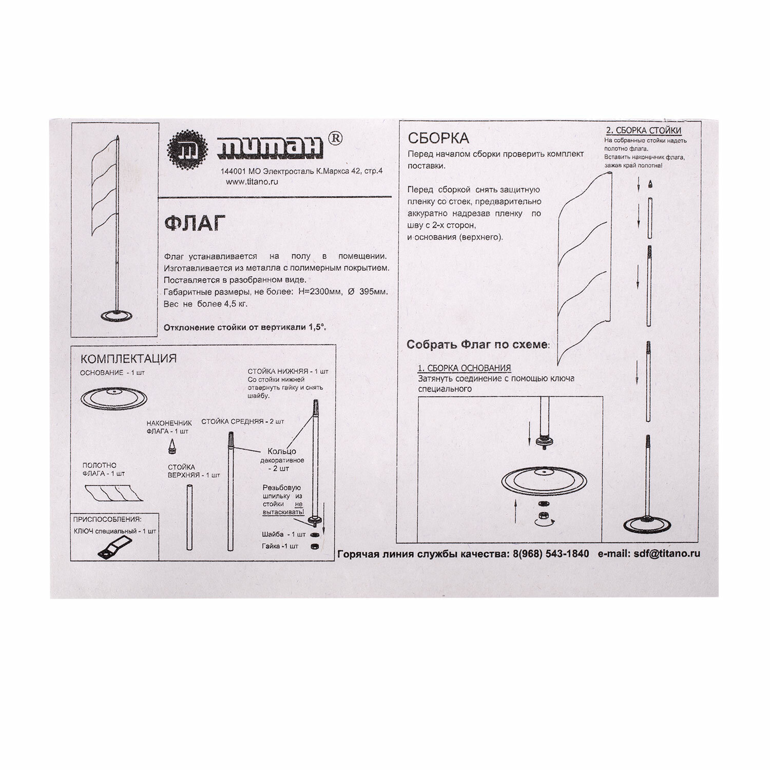 Флаг России, 90х135 см, напольный с флагштоком, высота 2,25 м, оцинкованная сталь с полимерным покрытием