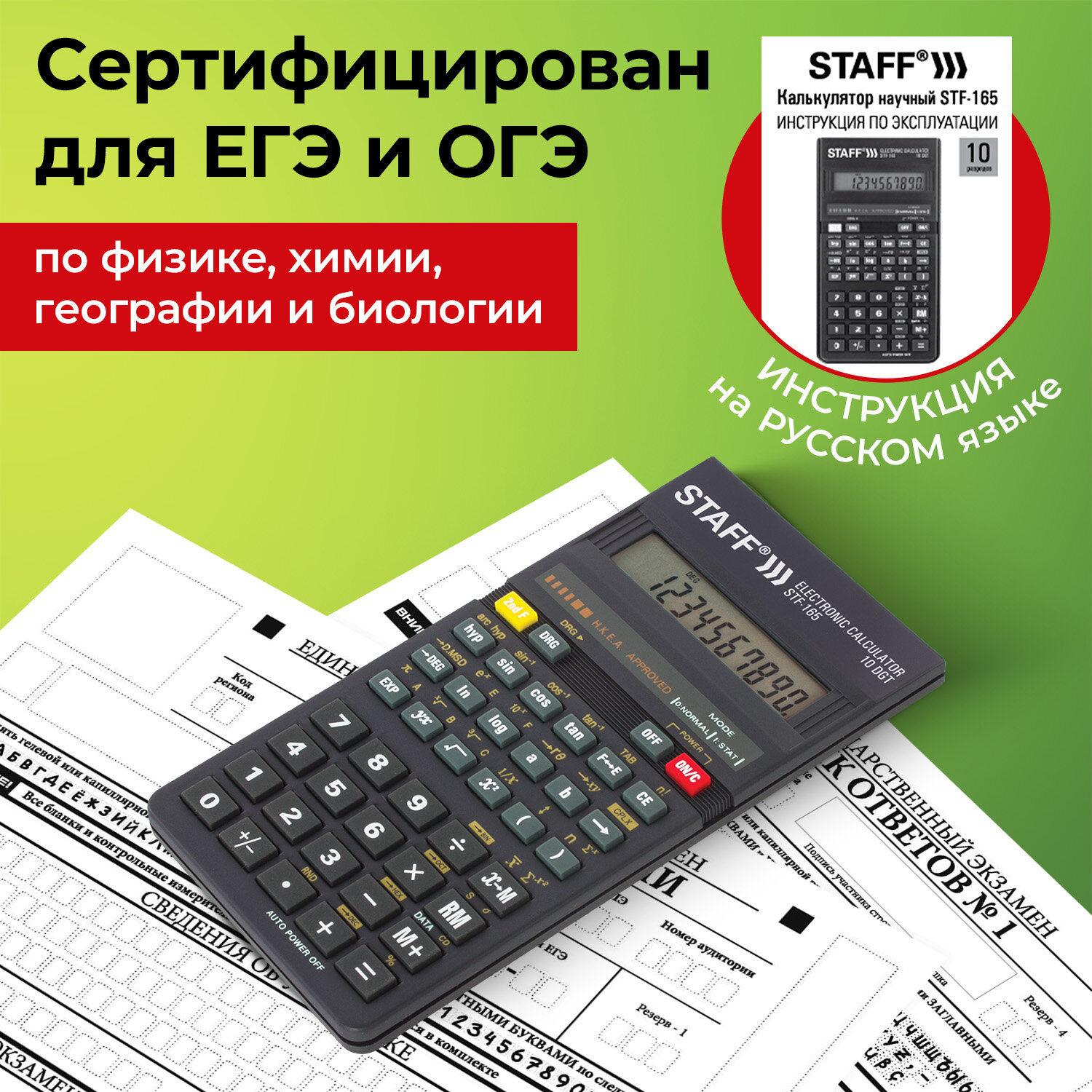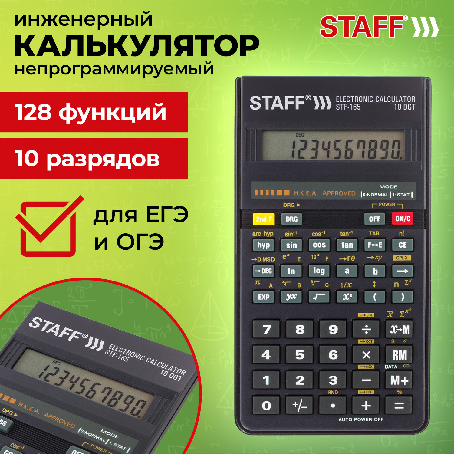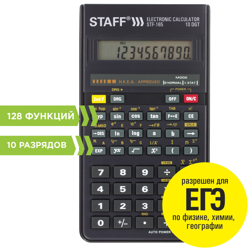 Непрограммируемый инженерный калькулятор STAFF STF-165 выполняет все основные вычисления, которые понадобятся школьникам на экзаменах и контрольных работах. Сертифицирован для использования на ЕГЭ и ОГЭ по физике, химии, географии и ОГЭ по биологии.