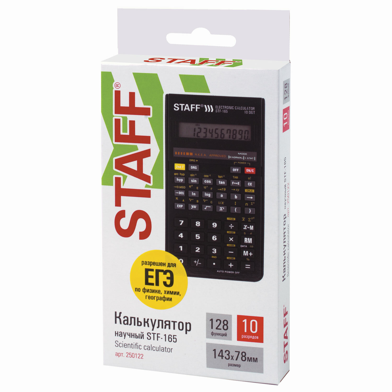 Калькулятор инженерный STAFF STF-165 (143х78 мм), 128 функций, 10 разрядов, 250122