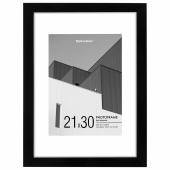 Рамка 21х30 см с паспарту 15х21 см небьющаяся, багет 20 мм, пластик, BRAUBERG "New Age", черная, 391275
