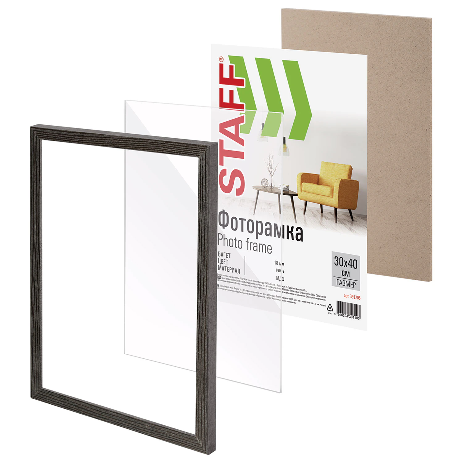 Рамка 30х40 см со стеклом, КОМПЛЕКТ 2 штуки, багет 18 мм МДФ, STAFF "Grand", цвет венге, 391336