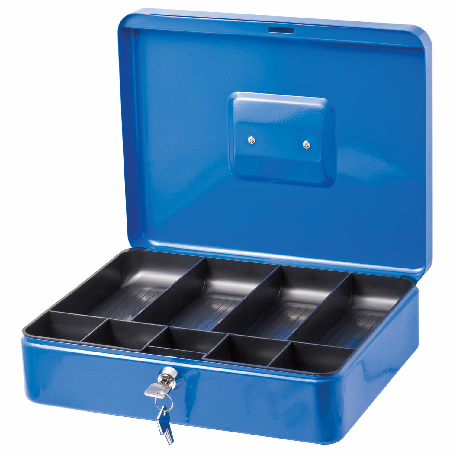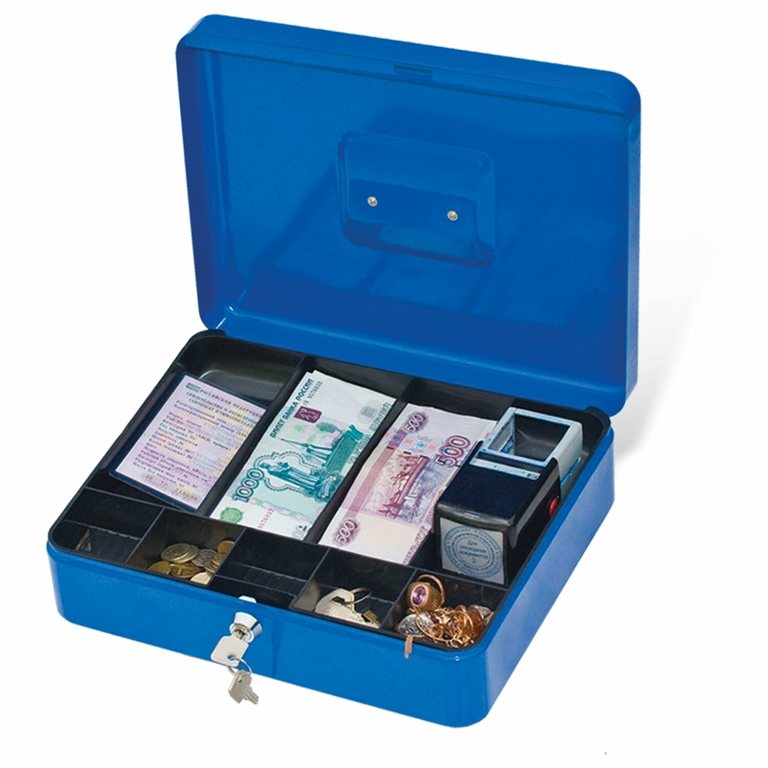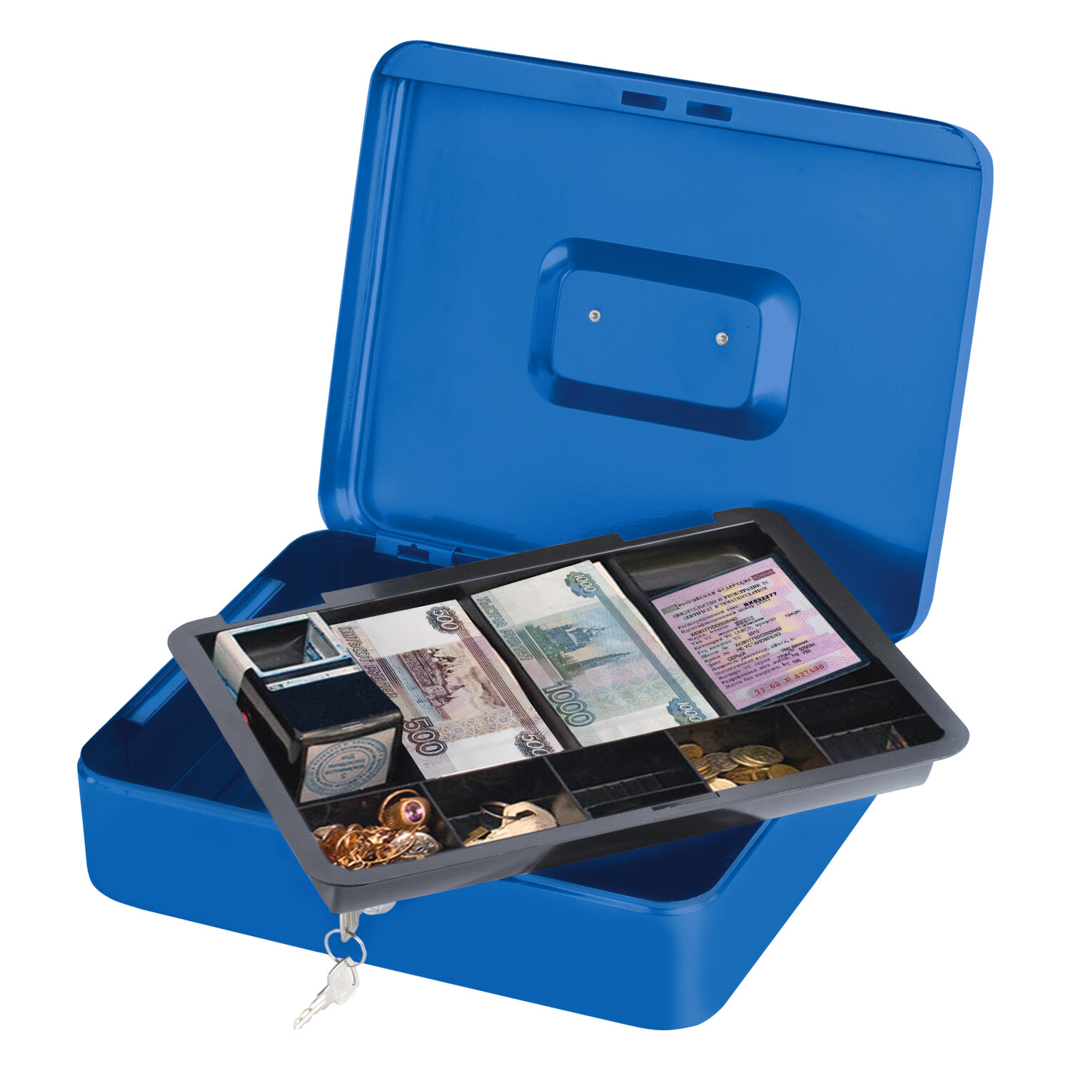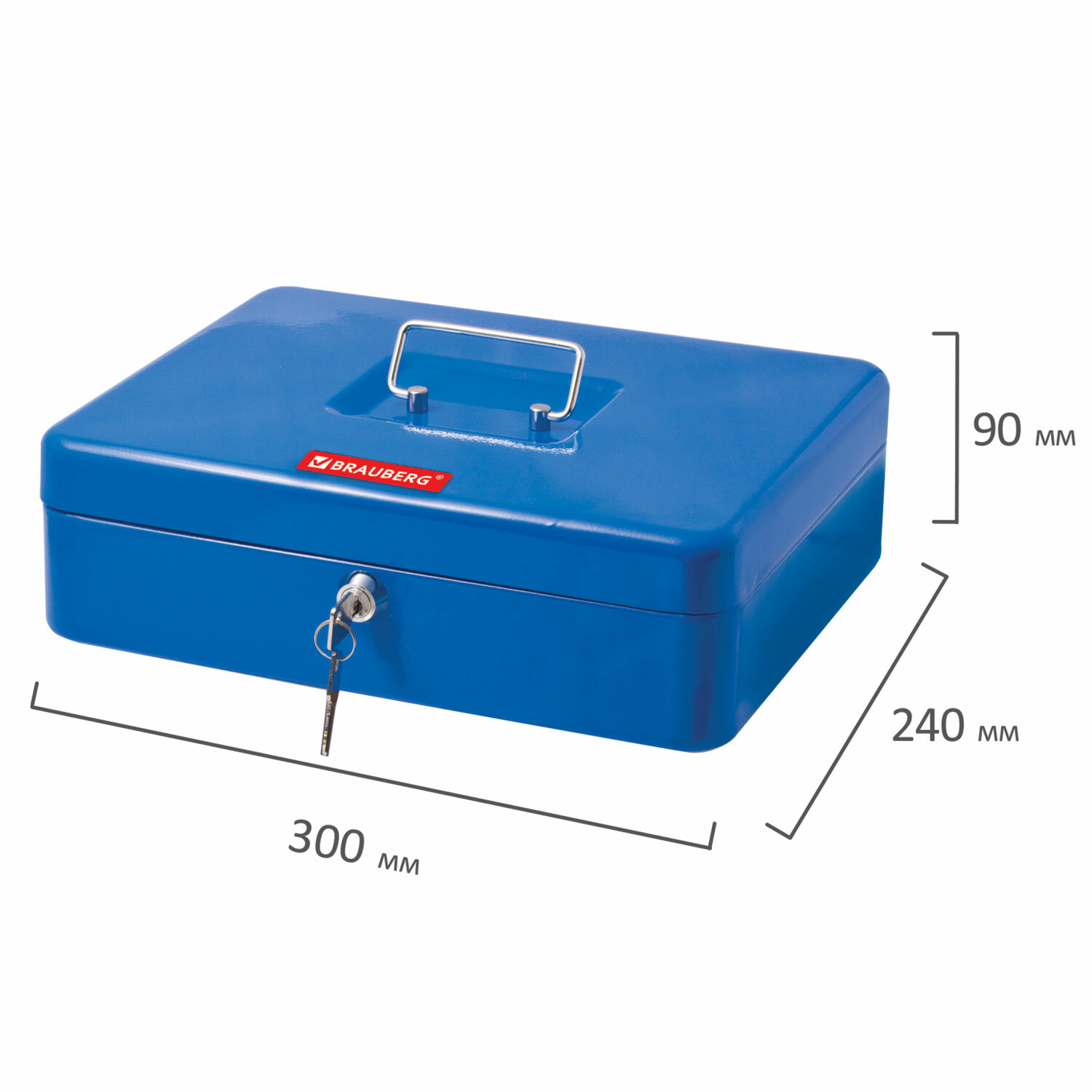 Ящик для денег, ценностей, документов, печатей, 90х240х300 мм, ключевой замок, синий, BRAUBERG, 290336