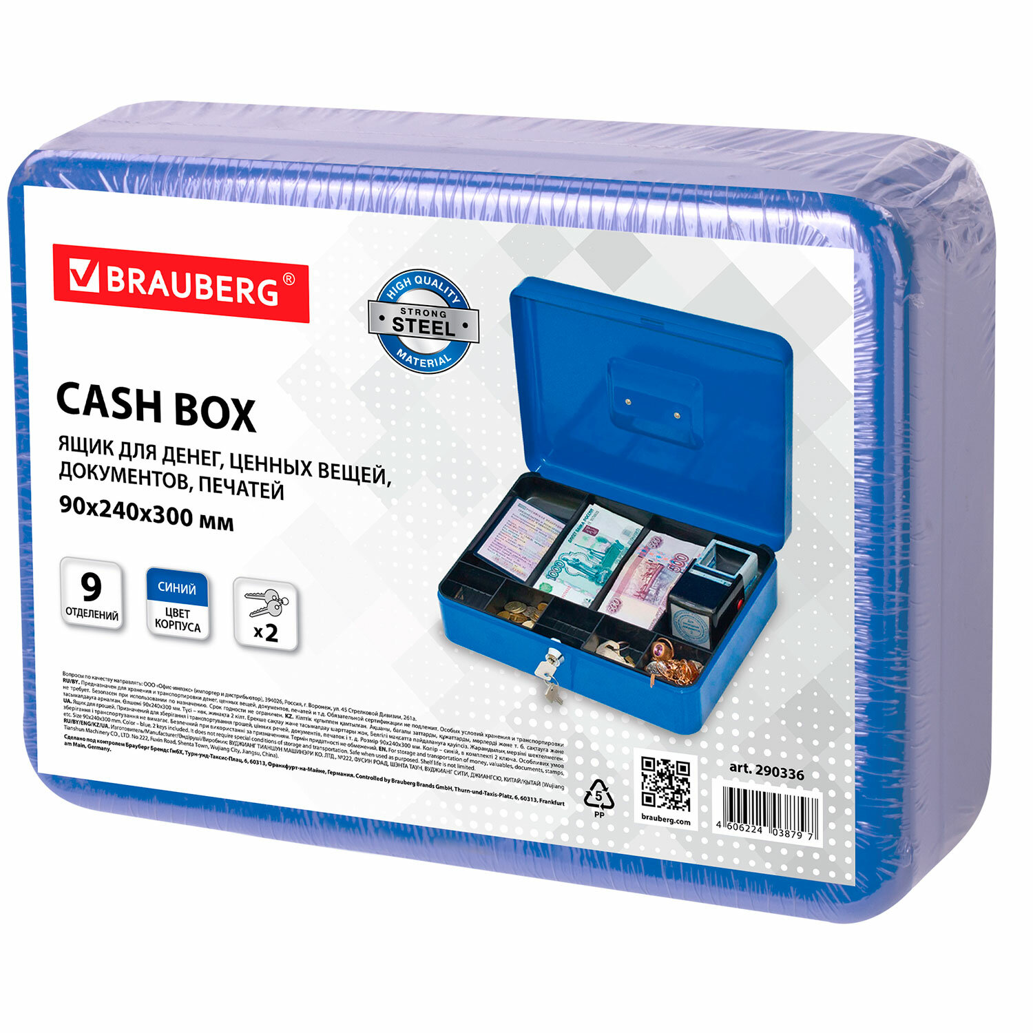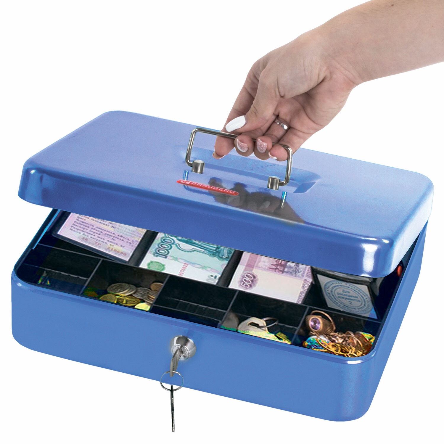 Ящик BRAUBERG предназначен для хранения и транспортировки денег, ценных вещей, документов, печатей, медикаментов. Используется дома и в офисе для ограничения доступа посторонних лиц. Отличное сочетание надёжности и вместительности.