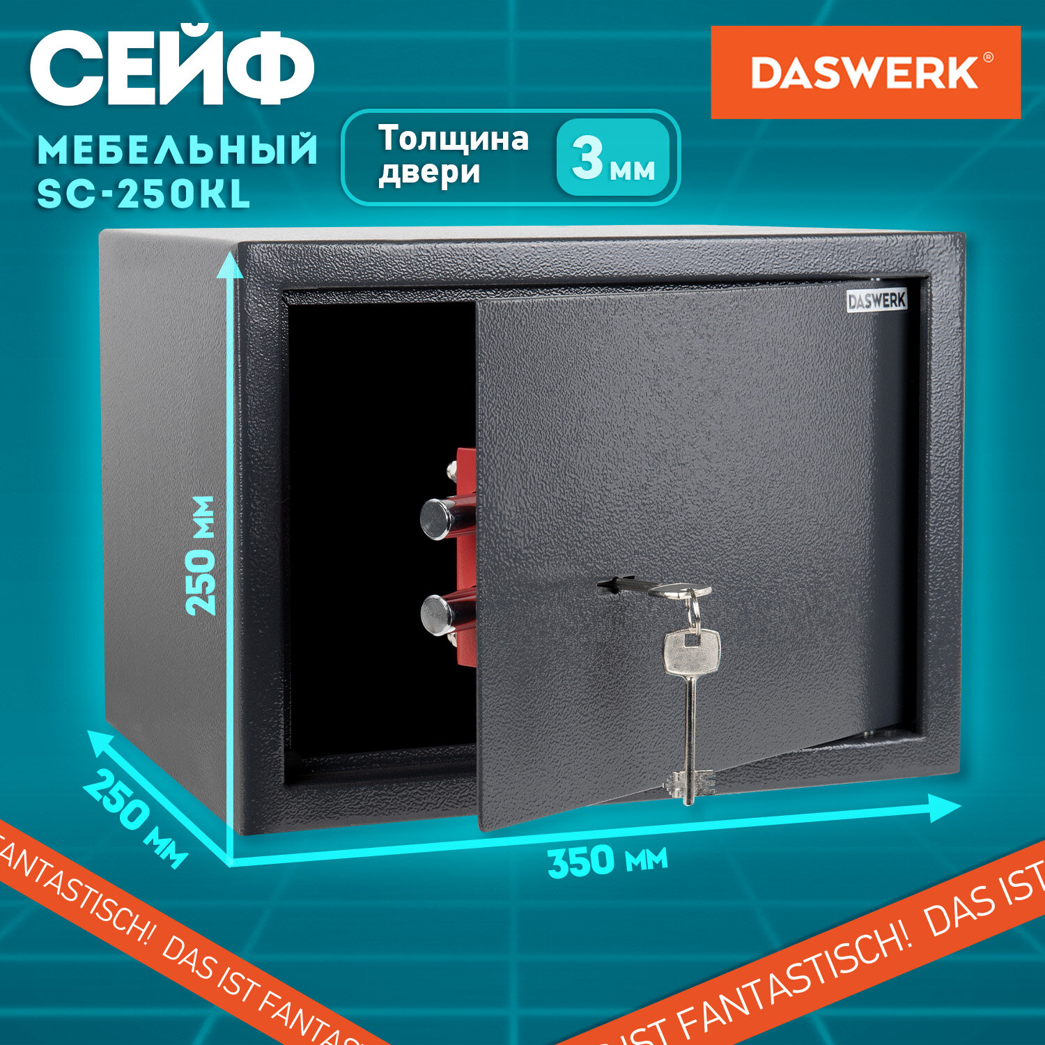 Сейф мебельный DASWERK (ДАСВЕРК) SC-250KL (250х350х250 мм), ключевой замок, графит, 291342
