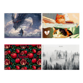 Содержит 40 листов плотностью 100 г/м2 формата А4 (203х288 мм). Обложка выполнена из мелованного картона. Скрепление листов осуществляется с помощью гребня. Подходит для смешанных техник рисования: красками, карандашами и фломастерами.