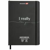 Скетчбук для маркеров 120 г/м2, 148х210 мм, 60 л., твердая обложка, резинка, BRAUBERG ART PREMIERE, "For you", 115101