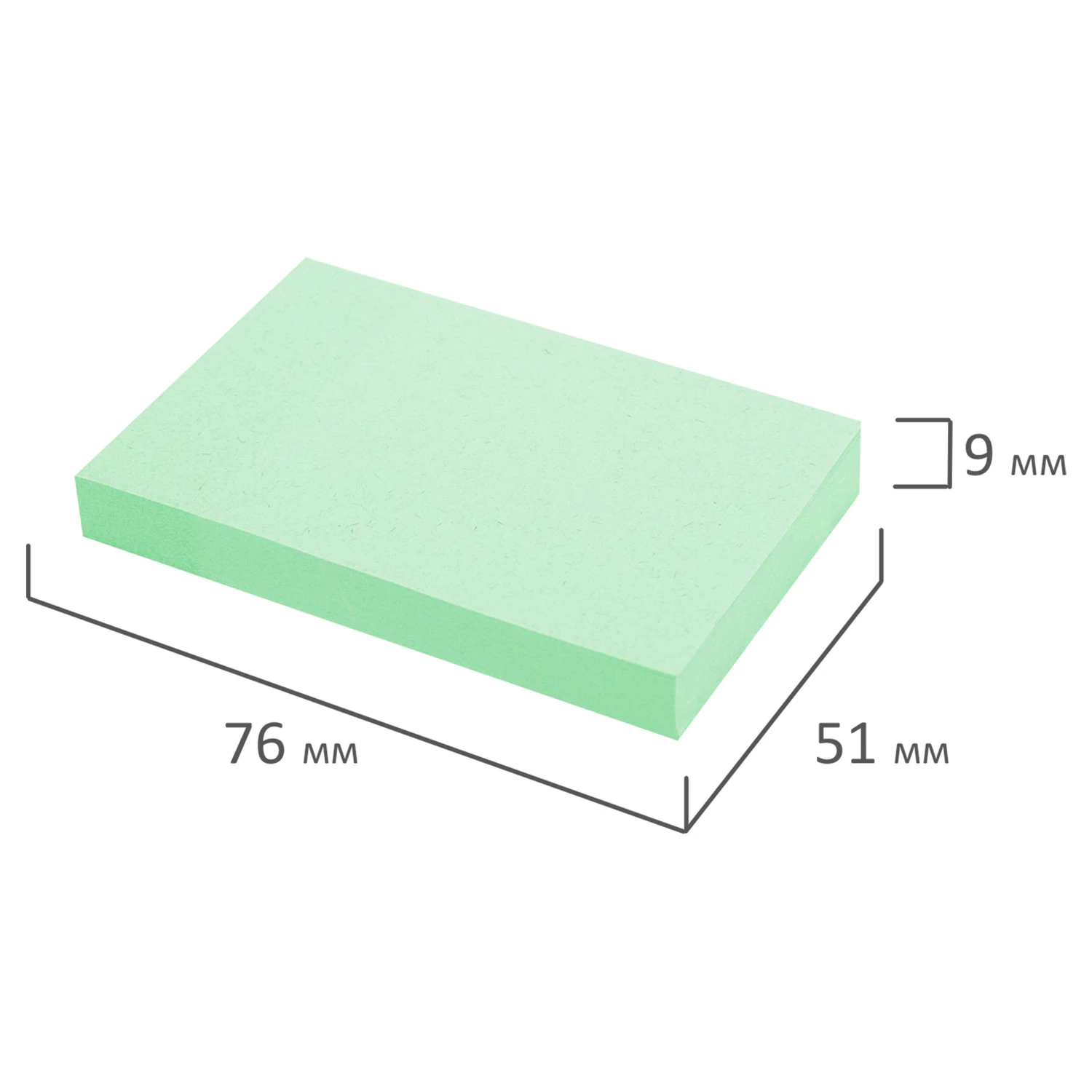 Стикеры зеленого пастельного цвета в форме квадрата 76х51 мм состоят из 100 листов. Плотность бумаги составляет 65 г/м2. Клейкий слой - 18 Н/м. Легко клеятся к любой поверхности. Не оставляют следов. Упакованы в полиэтиленовую пленку.