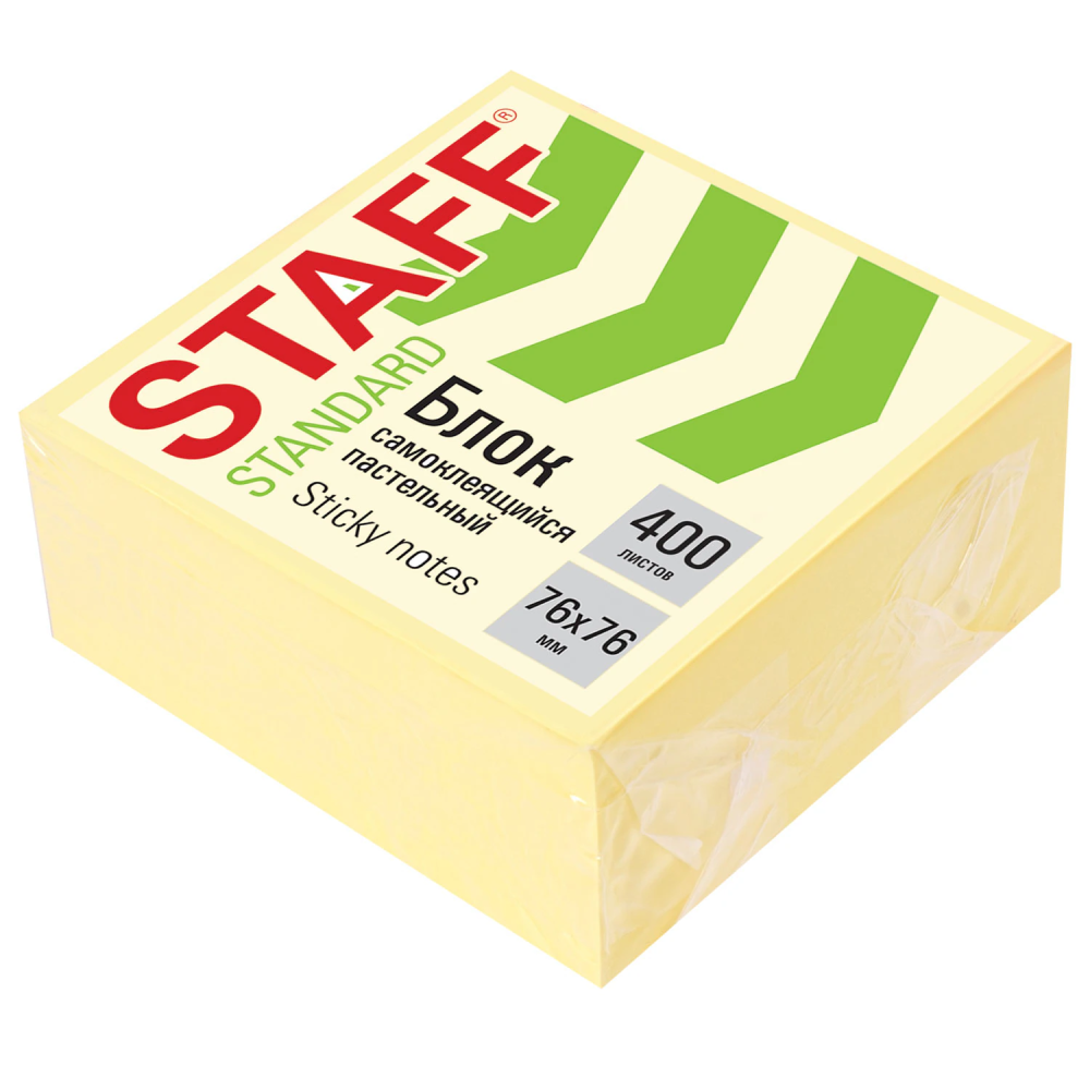 Блок самоклеящийся (стикеры) STAFF STANDARD, ПАСТЕЛЬНЫЙ 76х76 мм, желтый, 400 листов, 116586